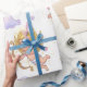 Wrap your love in a dream. This enchanting wrapping paper features adorable, golden-haired cupids flying amidst fluffy clouds against a serene sky-blue background. The pastel tones create a soft, angelic aesthetic that is perfect for sweet, tender gifts. It captures the innocent and magical side of Valentine’s Day beautifully