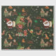 Papel De Presente Whimsical Santa Elf & Friends Christmas Green
