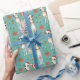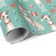 Este papel de embrulho é um prazer festivo! Apresenta um minúsculo fundo verde adornado com um charmoso padrão de natal de chicotes vestindo chapéus de Papai Noel e colarinhos vermelhos, cercado por árvores de Natal e caixas de presentes. O design brincalhão capta o espírito de feriado e adiciona um toque de capricho ao seu embrulho de presente.