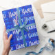 Sombras de azul, azul bebê e branco com um tema de religião judia para embrulhar presentes. Feliz Hanukkah White e Blue Wrapping Paper.