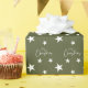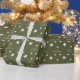 Feliz Natal Branco com estrelas brancas em um fundo verde.