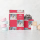 This Christmas gift wrap roll is a festive red, patterned with a watercolor-style picture of a French bulldog in snow. Ideal for dog lovers, the wrapping paper can be personalized with a name or other words for the finishing touch.