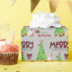 O padrão repetido neste belo papel de embrulho de Natal é uma imagem de um cão de Terrier branco americano Staffordshire vestindo um chapéu vermelho e branco de Papai Noel. O cachorro se senta entre pacotes de presentes envoltos ao lado de uma árvore de Natal decorada. Um pássaro toucinho está pousando na árvore atrás dele. O texto de xadrez de búfalos vermelho e preto estilizado diz MERRY CHRISTMAS", e sua própria assinatura está em dois campos para você personalizar.