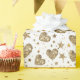White backgrounds with gold sparkly hearts wrapping paper, suitable for bridal showers and weddings.