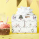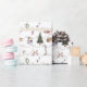 This magical, repeating pattern brings the entire town of Whoville to life! Set against a clean white background, the scene is linked by whimsical strings of circular garlands. The illustrations feature delightful moments, including a beautifully decorated Christmas tree, families of Whos gathered together, Max the Dog (in antlers) getting sweet attention from Cindy Lou Who, Whos playing on a tiny toy train, and Whos stacked high in playful towers. This design is bursting with the chaotic, heartwarming cheer of a true Dr. Seuss holiday!