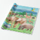 Wild animals of Africa on the background of the savannah landscape watercolor wallpaper illustration hand drawing. Safari animals elephant, hippo, buffalo, rhino, giraffe, zebra, flamingo, baboon, roe