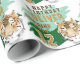 Wild Tiger Head Watercolor Birthday Wrapping Paper. This personalized gift wrap features a tiger graphic and bold 'ROARING INTO' text, alongside 'HAPPY BIRTHDAY'. Perfect for adding a wild touch to the special day. The vibrant design and custom name make it a standout choice for anyone who loves tigers and adventure.
