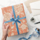 Papel de enrolamento com um design de William Morris, o famoso designer inglês do movimento Arts and Artesanatos, mostrando Tulips (1884) selvagens que estão colocados contra um pano de fundo de pêssego. Este padrão desenhar inspiração de folhetos turcos.