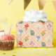 A charming wildflower pattern featuring delicate blooms arranged in a playful harlequin lattice on a warm blush background.