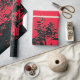 Um design de abstrato de arte de flores silvestres pretas silenciado contra um céu vermelho.
