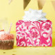 Papel de embrulho numa vintagem William Morris impressão floral de lírios estilizados e irrises, digitalmente melhorado e colorido, em tons de luz a cor-de-rosa fuchsia profundo e vinho profundo tinto sobre fundo branco