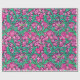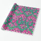 Papel de embrulho num William Morris, Art Nouveau, impressão de iretos e folhas têxteis, melhorado digitalmente e colorido, em fúcsia e rosa-gelo, verde-pavão, e branco, sobre fundo de vinho profundo