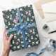 Papel personalizado de empacotamento de presentes de natal, ao qual você pode adicionar uma repetição de ou para mensagem. O design tem um padrão festivo de festas de neve de inverno caprichosa.