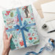 Papel De Presente Winter Woodland Blue & red Animals forest pattern