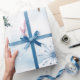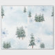 Blue Winter Wonderland Wrapping Paper com pinheiros e flocos de neve.