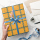 Papel de embrulho xadrez mostarda e azul-turquesa