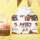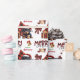 O padrão repetido neste belo papel de embrulho de Natal é uma imagem de um adorável filhote Rottweiler vestindo um chapéu de Papai Noel vermelho e branco. Há um travesseiro preto e vermelho de xadrez de búfalos atrás dele, e um pacote de presentes coordenado com uma fita de ouro ao seu lado. Há também um arco de xadrez de búfalos, um sino de ouro, e um texto que diz "JOY". O texto de xadrez de búfalos vermelho e preto estilizado diz MERRY CHRISTMAS", e sua própria assinatura está em dois campos para você personalizar.