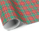 O papel de embrulho com um teste padrão clássico da xadrez do Natal no vermelho brilhante e o seafoam esverdeiam, com acentos do azul, do ouro amarelo, do preto, e os brancos.