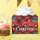 Feliz feriado! Ilustração do caminhão vermelho festivo. Texto personalizável!