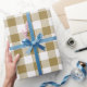 Papel De Presente Xadrez de Buffalo Dourado e Branco