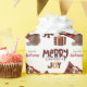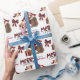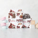 O padrão repetido neste belo papel de embrulho de Natal é uma imagem de um cão pastor australiano vermelho e branco vestindo um chapéu de Papai Noel, com um travesseiro de xadrez de búfalo preto e vermelho atrás dele, e um pacote de presentes coordenado com uma fita de ouro ao lado dele. Há também um arco de xadrez de búfalos e o texto correspondente que diz "JOY". O texto de xadrez de búfalos vermelho e preto estilizado diz MERRY CHRISTMAS", e sua própria assinatura está em dois campos para você personalizar.