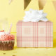 Papel de embrulho xadrez alegre e leve com um padrão suave de pêssego pastel, rosa beije e bege claro em um fundo branco/rosado. Perfeito para chás de bebê, casamentos elegantes, aniversários e presentes rústicos.