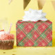 Xadrez de Natal em papel de embalagem vermelho e verde.
