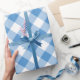 Papel De Presente Xadrez Diagonal Azul Claro e Búfalo Branco