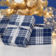 Papel De Presente Xadrez Escocês Azul Branco de Natal Ano Novo Retrô