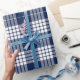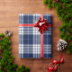 Papel de embrulho Xadrez Escocês Azul Branco de Natal Ano Novo Retrô.