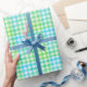 Papel De Presente Xadrez Escocês Gingham Verde Lima Azul Moderno Sim