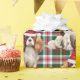 Este é o presente perfeito para o amante do cachorro e mãe do cão Cavalier King Charles, eles certamente se regozijarão quando você embrulhar seu presente nesta xadrez vermelha e verde com um espanhol expressivo que veste um chapéu de Papai Noel.