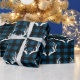 Papel de embrulho russo com veado branco como um padrão de chifres. O fundo é xadrez de verificação de búfalos pretos, mas a cor azul pode ser alterada. Enrole-o nesta época de férias no estilo arrojado de natureza russa! Saia entre a pilha de presentes!