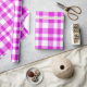 Molhando papel com padrão de xadrez rosa.