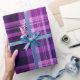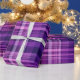 Papel de embalagem de xadrez roxa para ocasiões especiais.