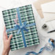 Papel De Presente Xadrez Verde, Branco e Preto