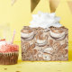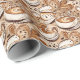 O padrão cappucccino na imagem apresenta várias visões de cima para baixo de copos cappucccino adornados com arte de espuma artesanal. Cada copo mostra um design único em sua superfície de espuma, incluindo uma forma cardíaca, uma Rosetta (padrão foliar) e uma intrincada espiral parecida com uma flor. A paleta de cores quentes — tons de marrom para o café e branco para os copos e a espuma artística — cria um confortável ambiente de café. Algumas xícaras são acompanhadas por discos, e você vai encontrar grãos de café por perto. No geral, é uma mistura deliciosa de estética do café, perfeita para papel de embrulho Zazzle!