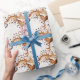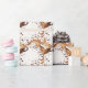 O padrão cappucccino na imagem apresenta várias visões de cima para baixo de copos cappucccino adornados com arte de espuma artesanal. Cada copo mostra um design único em sua superfície de espuma, incluindo uma forma cardíaca, uma Rosetta (padrão foliar) e uma intrincada espiral parecida com uma flor. A paleta de cores quentes — tons de marrom para o café e branco para os copos e a espuma artística — cria um confortável ambiente de café. Algumas xícaras são acompanhadas por discos, e você vai encontrar grãos de café por perto. No geral, é uma mistura deliciosa de estética do café, perfeita para papel de embrulho Zazzle!