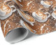 O padrão cappucccino na imagem apresenta várias visões de cima para baixo de copos cappucccino adornados com arte de espuma artesanal. Cada copo mostra um design único em sua superfície de espuma, incluindo uma forma cardíaca, uma Rosetta (padrão foliar) e uma intrincada espiral parecida com uma flor. A paleta de cores quentes — tons de marrom para o café e branco para os copos e a espuma artística — cria um confortável ambiente de café. Algumas xícaras são acompanhadas por discos, e você vai encontrar grãos de café por perto. No geral, é uma mistura deliciosa de estética do café, perfeita para papel de embrulho Zazzle!