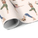 Wrap gifts with this yoga themed wrapping paper designed by Destei. The design features a light beige background with repeating illustrations of yoga women in different poses. One flows into dancer pose, another holds downward facing dog and the third balances in tree pose. Each wears a different outfit with color combinations of pink and black, blue and white, and green and brown. The beige background keeps the design clean and balanced while the illustrated poses bring movement and energy to the pattern.