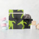 O papel de envolvimento verde do design gráfico do zombi é perfeito para um aniversário, apocalipse do zombi, o Dia das Bruxas, erva-benta do monstro, partido do tema do monstro. Envolva seus presentes, prêmios e mais de aniversário neste papel de envolvimento ghoulish.