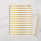 Belo papel de rascunho com linhas de ouro em fundo branco. A parte de trás do papel é toda de cor dourada* (*note que a cor dourada é impressa no papel e que a folha não real é aplicada no papel).