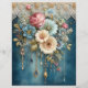 Papel de Scrapbook com Flores Azuis Turquesa e Gemas