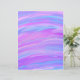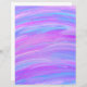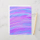 Apresenta um design pintado em cores rosa, roxo e turquesa.