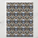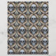 Papel de scrapbook de 21,59 cm x 27,94 cm impresso com um padrão de damasco elegantemente assustador com caveiras sorridentes e pequenos morcegos.