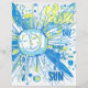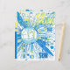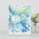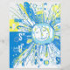 Um sol caprichoso em um estilo de arte de palavras abstratas rabiscadas e desordenadas colorido de azul e amarelo.