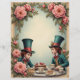 Organize uma festa de chá fantástica com este delicioso papel com uma cena vintage de Alice no País das Maravilhas. Ele apresenta dois adoráveis personagens do Chapeleiro Louco brindando com xícaras de chá em uma mesa com bolo, emoldurados por uma bela borda de grandes rosas cor-de-rosa. Com infinitas possibilidades criativas, este papel é perfeito para convites, scrapbooking, junk journaling e outros projetos personalizados. Este papel mate de alta qualidade proporciona um visual nítido e profissional para qualquer projeto, grande ou pequeno. Sua versatilidade o torna uma adição perfeita para artesanato, papelaria ou simplesmente adicionar um toque nostálgico às suas criações.