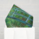 A pintura apresenta uma passarela de turquesa pálida, arquejando sobre uma lagoa revestida de gramíneas altas e cheia de lírios rosa-pétalas e amarelo-manteiga, passa por esta pintura horizontal. A cena é pintada com toques vibrantes. No terço superior da composição, a ponte rasa e rasgada toca quase na borda superior da canvas, e se estende de cada lado. As sombras na ponte são pintadas com beringela roxa. Bandas de lírios suavemente ziguezagues até à distância na superfície da água. As gramíneas primavera e esmeralda-esverdeadas crescendo ao longo das margens enchem o espaço ao redor e sobre o lago, e elas se misturam em uma tela de árvores além daquele cercado. O verde das gramíneas e árvores está refletido na superfície da água, assim como na parte inferior da ponte. Se você está procurando por uma ideia de presente Claude Monet para aquele fã de Monet ou você precisa de algumas ideias especiais de presente de arte para um amigo artístico em sua lista, aqui está uma seleção criativa para ponderar.