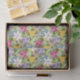 Inspirado pelas flores da família dos borboletas, este lindo padrão floral mostra abelhas bonitinhas zunindo entre as borboletas amarelas, a clematis branca, a heptica lavanda, o delfinium azul e o ranúculo cor-de-rosa sobre um fundo verde macio. Esta design é perfeita para uma alegre sensação de verão.