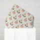 Abstract floral pattern with alternating designs in pink, red, and yellow on a cream background. The close-up shows vibrant, detailed squares.